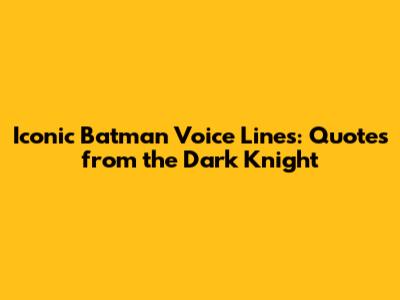 Hey guys, ever wondered what makes Batman, well, Batman? It's not just the gadgets or the brooding, it's also those unforgettable voice lines that send chills down our spines and make villains tremble. From the comics to the movies, and even the games, the Dark Knight has delivered some seriously iconic quotes. We're going to dive deep into the most memorable Batman voice lines, exploring their impact and why they resonate with us so much. So, grab your grappling hook and let's swing into the world of the Caped Crusader's most famous sayings!