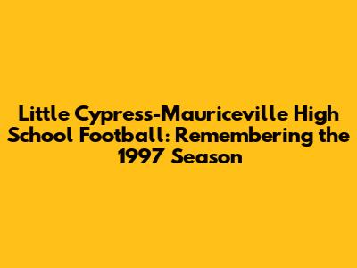 Hey sports fanatics, let's rewind the clock and dive into the gridiron glory of Little Cypress-Mauriceville High School (LCM) football, specifically their unforgettable 1997 season. The year 1997 was a time of epic comebacks, nail-biting finishes, and moments that are etched in the memories of everyone who followed the team. We're talking about a season that went beyond just wins and losses; it was about the heart, grit, and the unwavering spirit of the players and the whole community that rallied behind them. So, grab your jerseys, fire up your memories, and let's go back to those thrilling games, the legendary players, and the unforgettable moments that defined LCM football in 1997. We're going to break down the key games, highlight some of the star players, and explore what made this season so special for the Bears. It's time to relive the excitement, the drama, and the pure, unadulterated joy that this season brought to everyone involved. Let's get this show on the road! This was a year where the Bears, under the Friday night lights, not only played the game but showcased the true meaning of teamwork, determination, and the love for their community. Let's explore the heart of this team and the mark they left on everyone who witnessed their journey.
