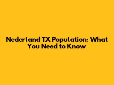 Nederland TX Population: What You Need To Know