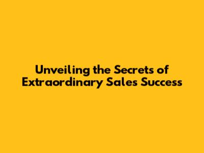 Unveiling The Secrets Of Extraordinary Sales Success